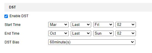 ההגדרות DST במערכת HIKVISION אמורות להראות כך: